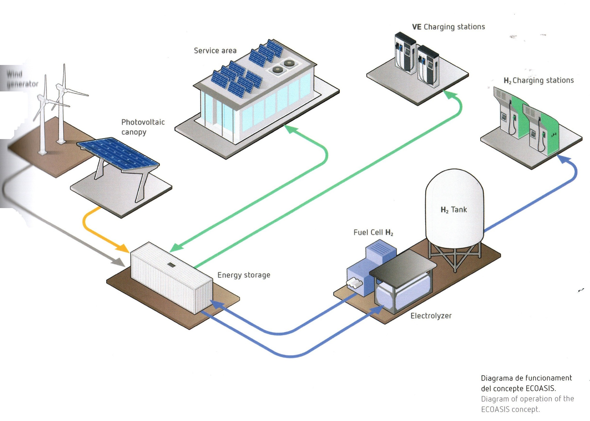 l’électricité via des piles à combustible pour alimenter les bornes de charge.
