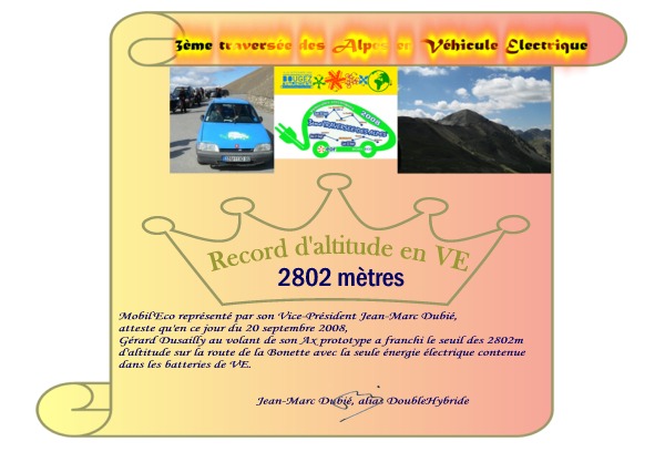 Les Diplômés officiels de la 3ème Traversée des Alpes en véhicules électriques.Ceux qui ont atteint les 2802 m dans le cadre du règlement de la Traversée des Alpes A - Les