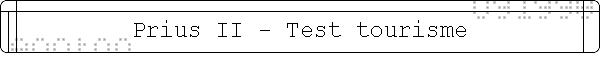 Prius DH au Pont de la Caille ESSAI PRIUS II - En condition "Tourisme" - 1 novembre 2006Objectif tester la Prius en condition weekend tranquille : Prendre l'autoroute Lyon-Aix Les Bains Nord - Grimper dans le massif des Bauges - Faire tester la Prius à un ami - Visite du mont Salève - Retour sur Lyon. Conditions: température extérieure moyenne 8°C temps sec. Test Particulier: Test de la tenu de la batterie 12 volts Prius en arrêt longue durée. Il y a un an, j'avais fait un premier test d'immobilisation de la Prius sur 1 mois pour tirer au clair l'affaire de la capacité de la batterie 12 volts en particulier en laissant le système Smart-Key actif. La période de 30 jours s'était passée sans problème. Un an après avec une voiture moins neuve, le test pouvait-il être encore confirmé ? Arrêt de la Prius le 23 septembre 2006. 5 barres batterie principale (bleue) - Fermeture des Portes avec système Smart Key activé. 31 octobre 2006 pour test: ouverture de la Prius via SMART KEY. Mise du contact, Chauffage mise sur OFF. IGON mode EV. La batterie 12 volt a donc tenu au moins 37 jours. J'ai laissé le contact 30 minutes (sans que le moteur thermique se mette en route pour recharger la batterie 12 volts via l'énergie de la batterie principale). Au bout des 30 minutes, la batterie principale a perdu 2 barres (reste une seule barre bleue avant de passer à 2 barres roses). La Batterie 12 volts a été rechargé durant 30 minutes. IG OFF. La Prius est prête pour la sortie de demain. On peut en déduire qu'il est obligatoire de faire tourner le moteur thermique au moins une fois tous les 2 mois pour recharger la batterie principale. Car un nouveau test risquerait de faire passer la batterie principale sur 1 barre rose... Le parcours: Ce parcours comprend 100 km autoroute à l'aller et au retour A l'aller autoroute parcouru à 135 km/h compteur soit 130 km/h chrono. Altitude à l'arrivée 1000 m Parcours touristique 2 personnes à bord 4,6 l aux 100 Vitesse moyenne 60 km/h, passage d'un col à 1533 m avec température extérieure 3°C. Sur ce parcours, 81 km ont été fait avec une moyenne de 3,88 l aux 100 km sur petite route moyenne montagne.